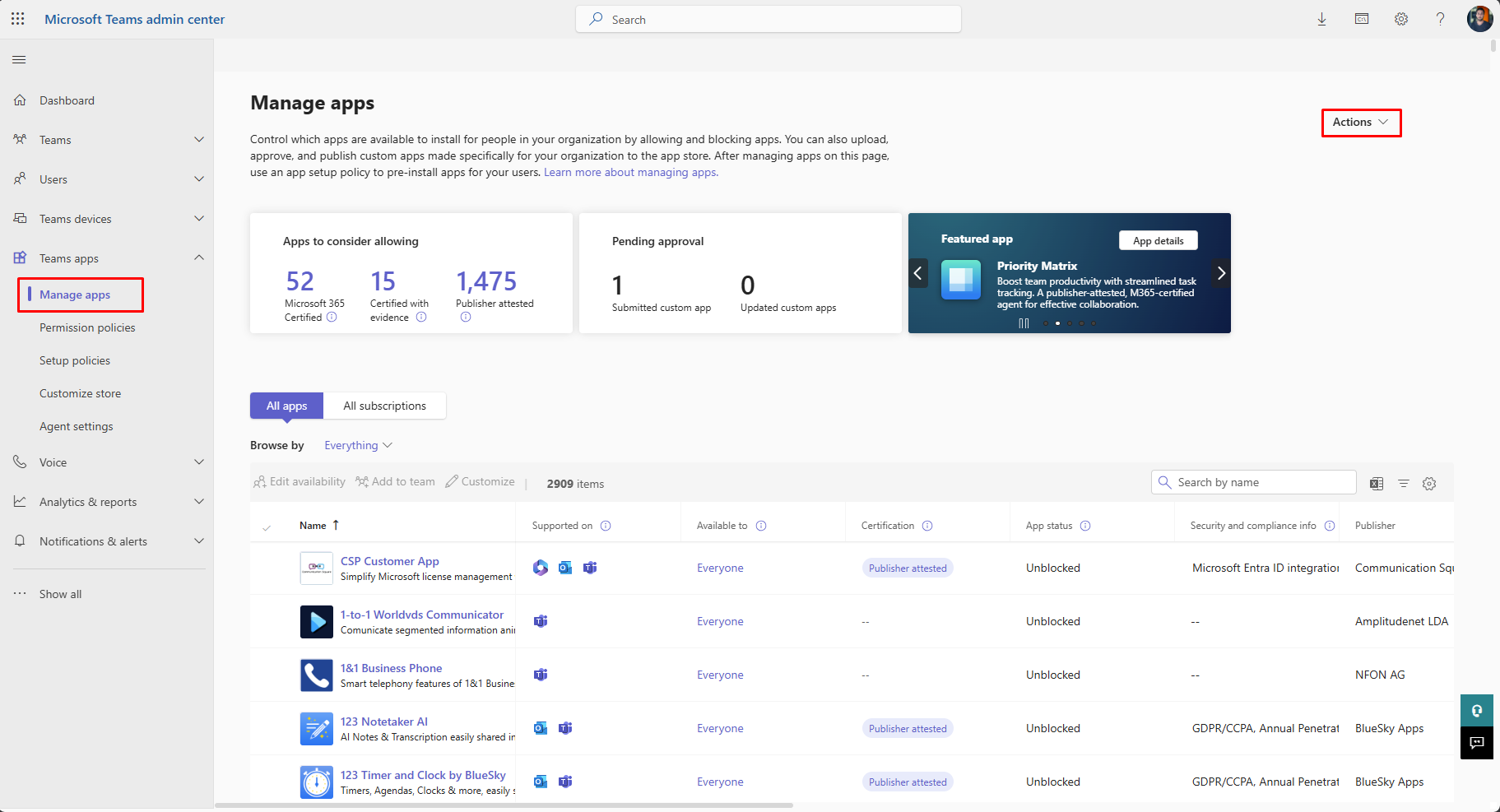 45. Navigate to **Teams Apps → Manage Apps**.