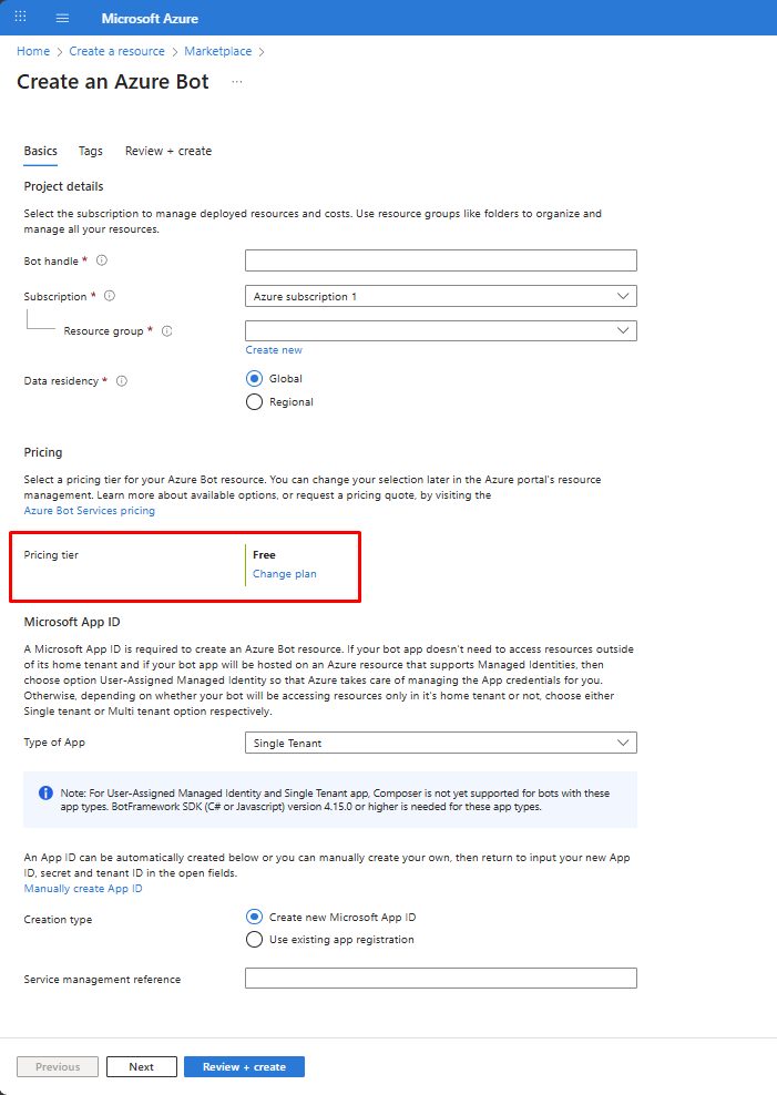 8. In **Pricing Tier**, you can select one of them. We continued with Free Plan.