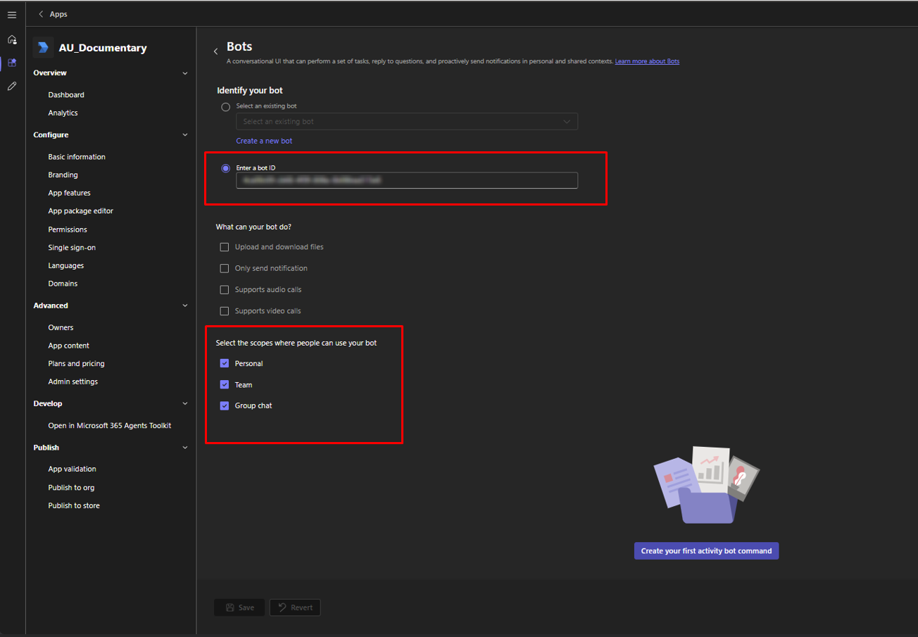 ## **6. Defining the Application in Teams Developer Portal**