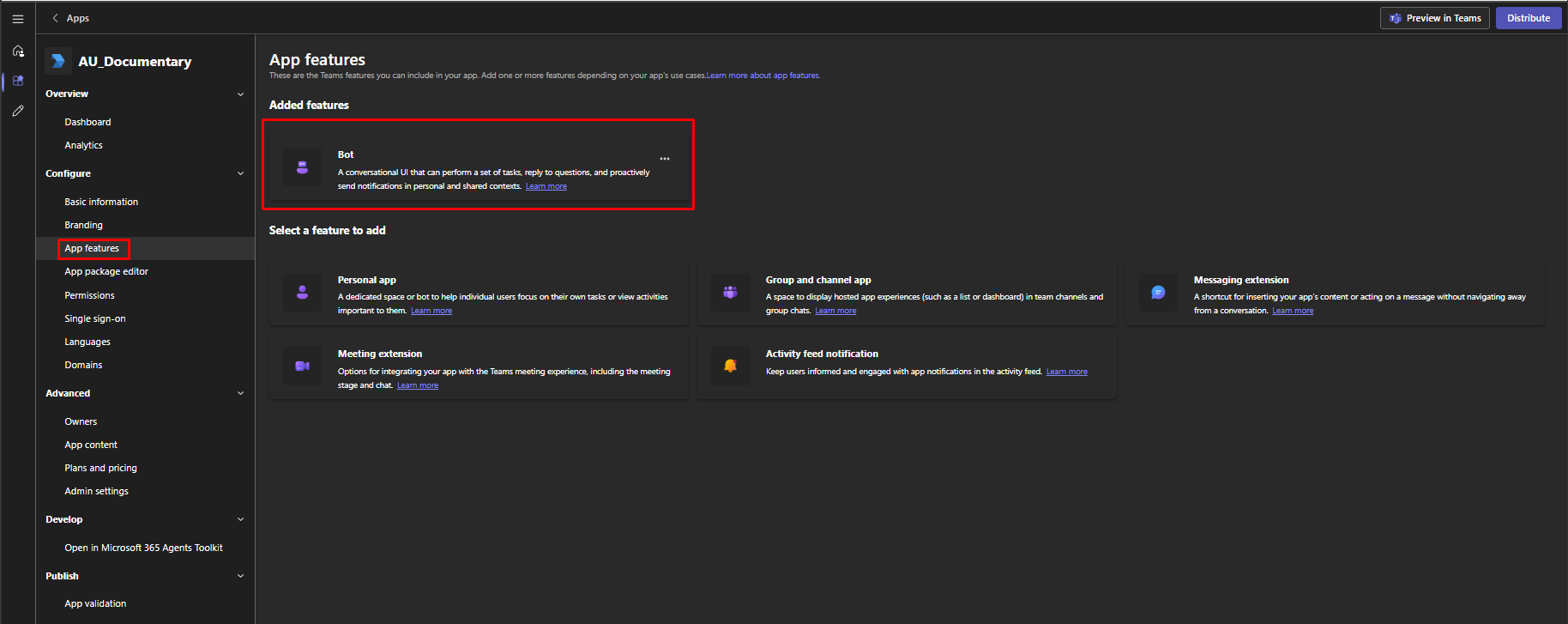 ⏳ It may take up to **5 minutes** for the bot to appear inside MS Teams. You can also test instantly using the **Preview in Teams** button inside Developer Portal.