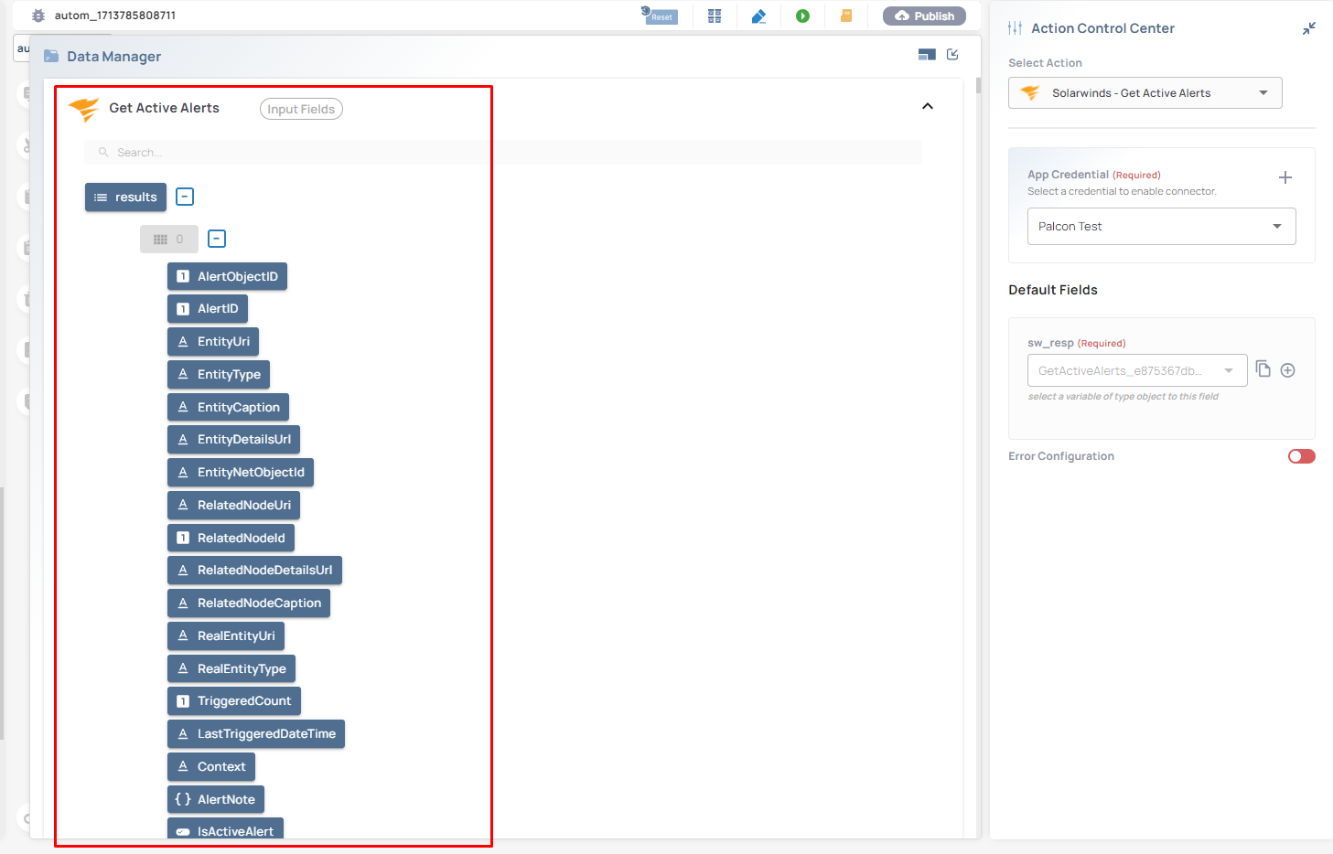1. Select the "Get Active Alerts" action in Autom Mate.